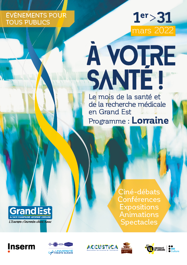 « A votre santé ! » en Lorraine vous propose depuis 2019 un large programme de rencontres et d’échanges : conférences, expositions, projections et spectacles traitant de la santé, du corps et de ce qui l’entoure. Leurs points communs : apporter des informations récentes, issues de la recherche scientifique au plus grand nombre.