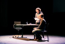 Une représentation binôme se compose d’extraits vidéos de la rencontre entre l’auteur.rice et le.la scientifique, de la lecture-spectacle de la pièce par les artistes de la compagnie et d’un échange avec le public.