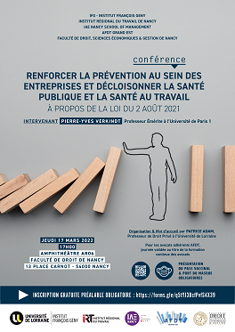 Conférence organisée dans le cadre du cycle de conférences de l'AFDT Grand Est, en partenariat avec l'Institut Régional du Travail de Nancy, l'IAE Nancy School of Management et la Faculté de Droit, Sciences économiques et Gestion de Nancy