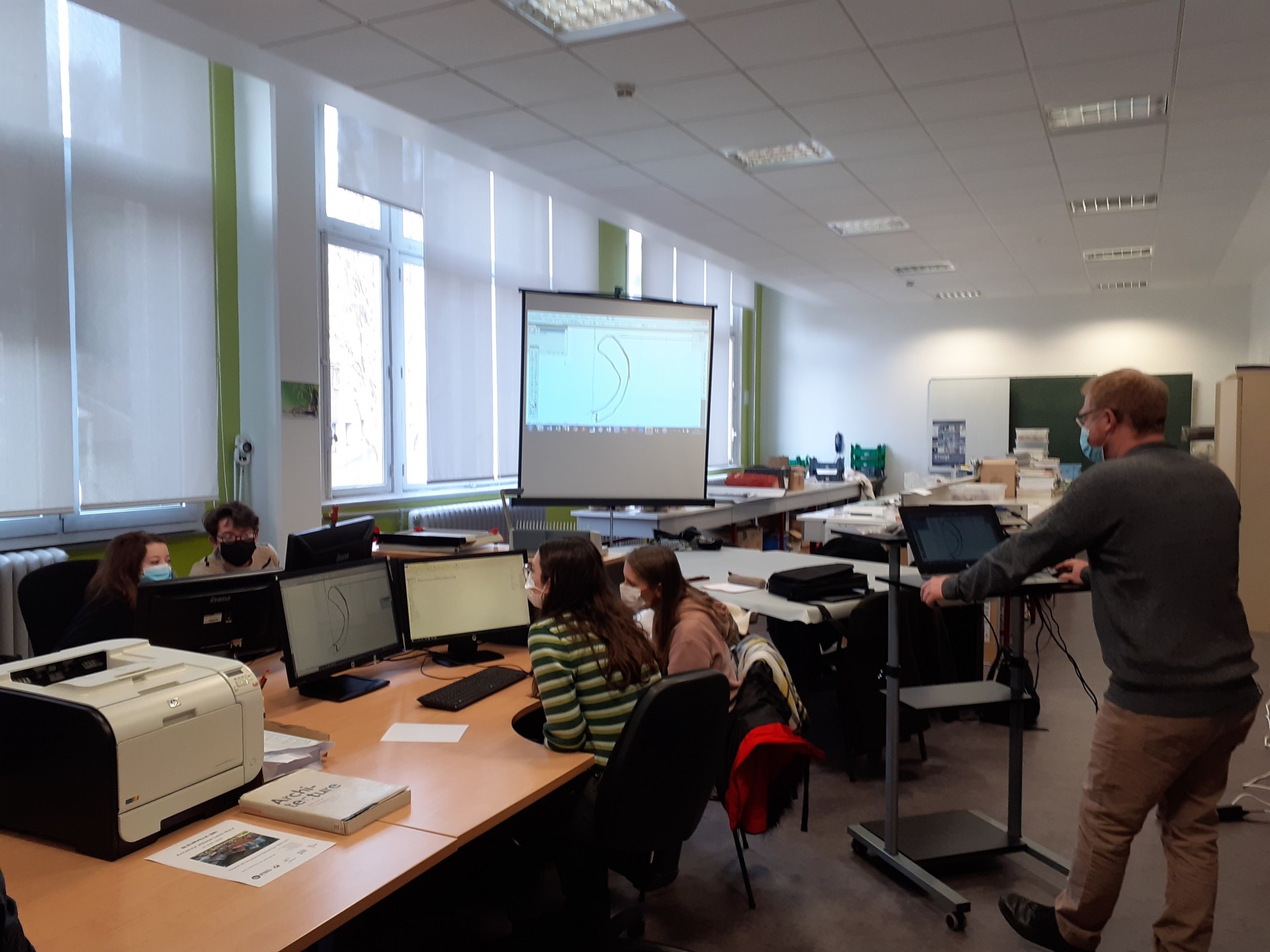 Après une réflexion théorique sur le rôle joué par la céramique dans la compréhension du chantier de fouille, ils ont pu s’entrainer sur l’analyse macroscopique, la compréhension du tesson et, enfin, sur les méthodes de dessin du mobilier depuis la prise de forme des céramiques au conformateur, jusqu’à la restitution des diamètres et des volumes, puis la mise au propre sous logiciel Adobe Illustrator®.
