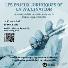 La promotion du master 2 Droit des Responsabilités et de la Réparation de Metz organise cette année un colloque sur les enjeux juridiques de la vaccination.