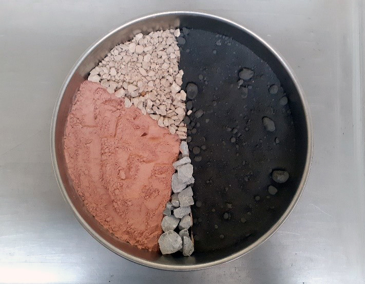 Une quarantaine d’échantillons issus de boues de lavage des granulats et de déblais divers ont été fournis par les partenaires du projet. Leur caractérisation a permis d’identifier 4 ressources argileuses prometteuses. Elles ont subi des essais de calcination afin de déterminer pour chacune d’elles les conditions optimales de leur cuisson. Des tests dédiés ont permis de comparer leur réactivité finale. Ces 4 argiles calcinées ainsi que 2 métakaolins de référence (commercialisés dans d’autres régions françaises) et 2 fillers calcaires ont été mélangés à 4 ciments produits par des cimentiers de la Grande Région, partenaires du projet. L’agencement de ces composants a été étudié au cas par cas, car des argiles calcinées de même réactivité peuvent impacter plus ou moins fortement la maniabilité des bétons, selon la nature des autres constituants présents. Leur structure en feuillets imbriqués forme en effet des « amas » poreux qui peuvent mobiliser beaucoup d’eau, en plus de celle nécessaire à la mise en œuvre du béton. Cette eau excédentaire altère alors la résistance mécanique et la durabilité du composite, réduisant ainsi l’effet d’une bonne réactivité. L’ajustement de la finesse et des proportions de chaque constituant, tant sur le plan expérimental que théorique, a permis de mieux comprendre le rôle respectif des paramètres impliqués.