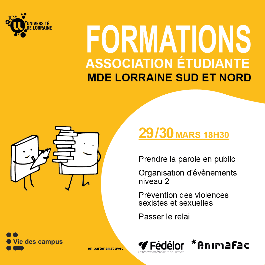 L'université poursuit son partenariat avec Félélor et Animafac afin de permettre aux associations d'acquérir les bases utiles à chaque étape de la vie d’une association ou approfondir des compétences qui vous permettront de développer vos projets.