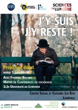 Sciences en Lumière (CNRS, Université de Lorraine) propose, en partenariat avec le centre social et culturel "Les Epis" de Lunéville, dans le cadre de la "Semaine des Séniors" organisé par le dernier, une projection-débat, dans le thème de la "vie chez soi", le choix de plusieurs personnes âgées.