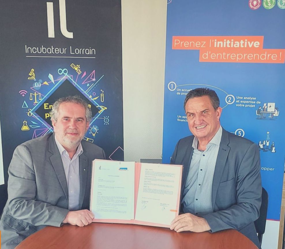 Cette signature s'est tenue en présence de Pierre Mutzenhardt, Président de l’Incubateur Lorrain et Roger Walter, Président de Initiative Metz.