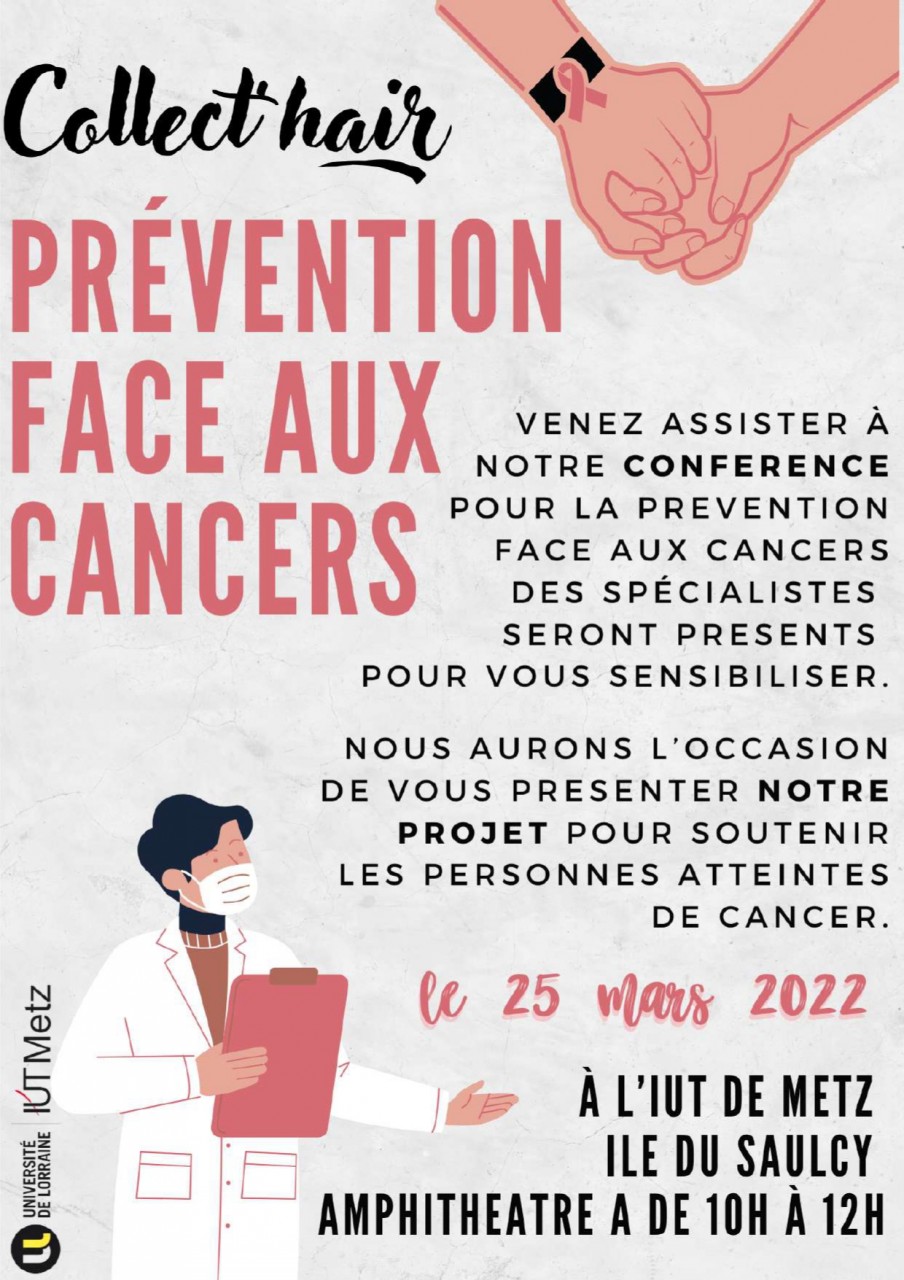 L'équipe de Collect'Hair organise une conférence qui se déroulera à l'amphithéâtre A de l'IUT de Metz de 10h à 12h le vendredi 25 mars 2022.