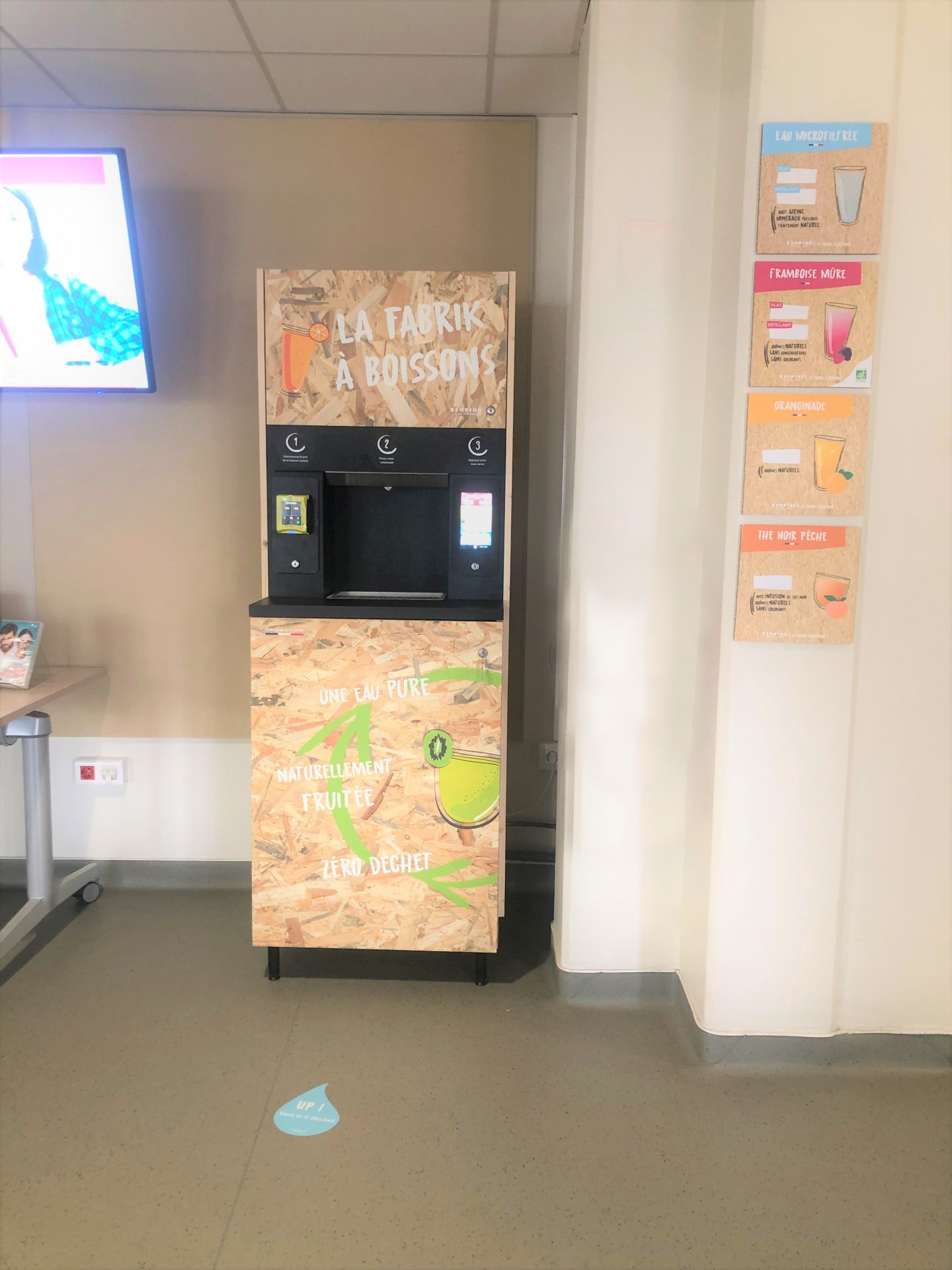 La Fabrik à Boissons est une fontaine qui transforme l’eau du réseau en eau filtrée et en boissons aromatisées.