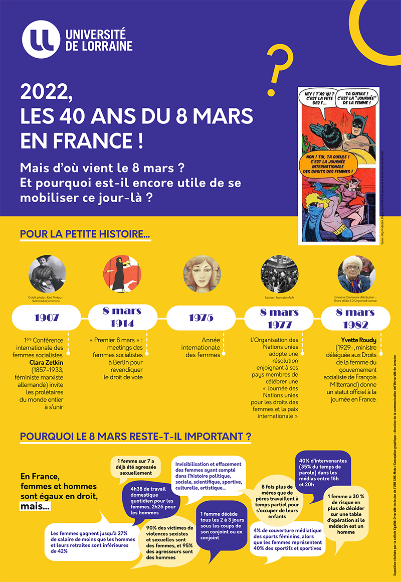 A l'occasion de la journée internationale des droits des femmes du 8 mars 2022, la cellule Egalité-Diversité-Inclusion (EDI) de l'UFR Sciences humaines et sociales - Metz a réalisé une exposition sur les thématiques liées à l'égalité femmes-hommes. L'opportunité de rencontrer ses membres pour en savoir plus sur leurs missions et leurs projets !
