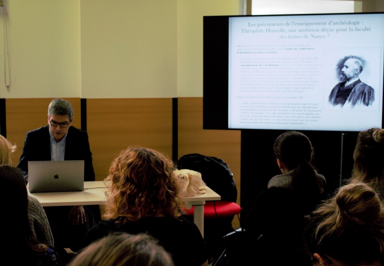 Samuel Provost, Maître de Conférence HDR en Archéologie de l’Antiquité tardive, conservateur adjoint du MAUL, a débuté la conférence en détaillant l’histoire du MAUL, de sa fondation en 1904 dans les locaux de l’ancienne faculté de droit de Nancy à sa fermeture en 1962.