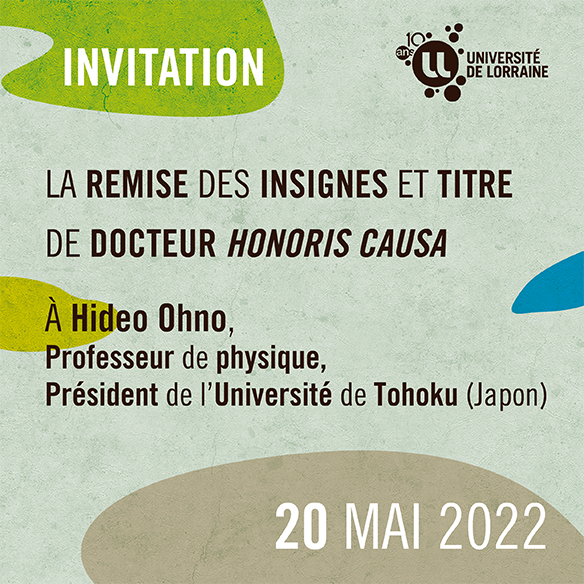 Le 20 mai 2022, seront remis les insignes et titre de docteur honoris causa à Hideo Ohno, professeur de physique et président de l'Université de Tohoku (Japon).