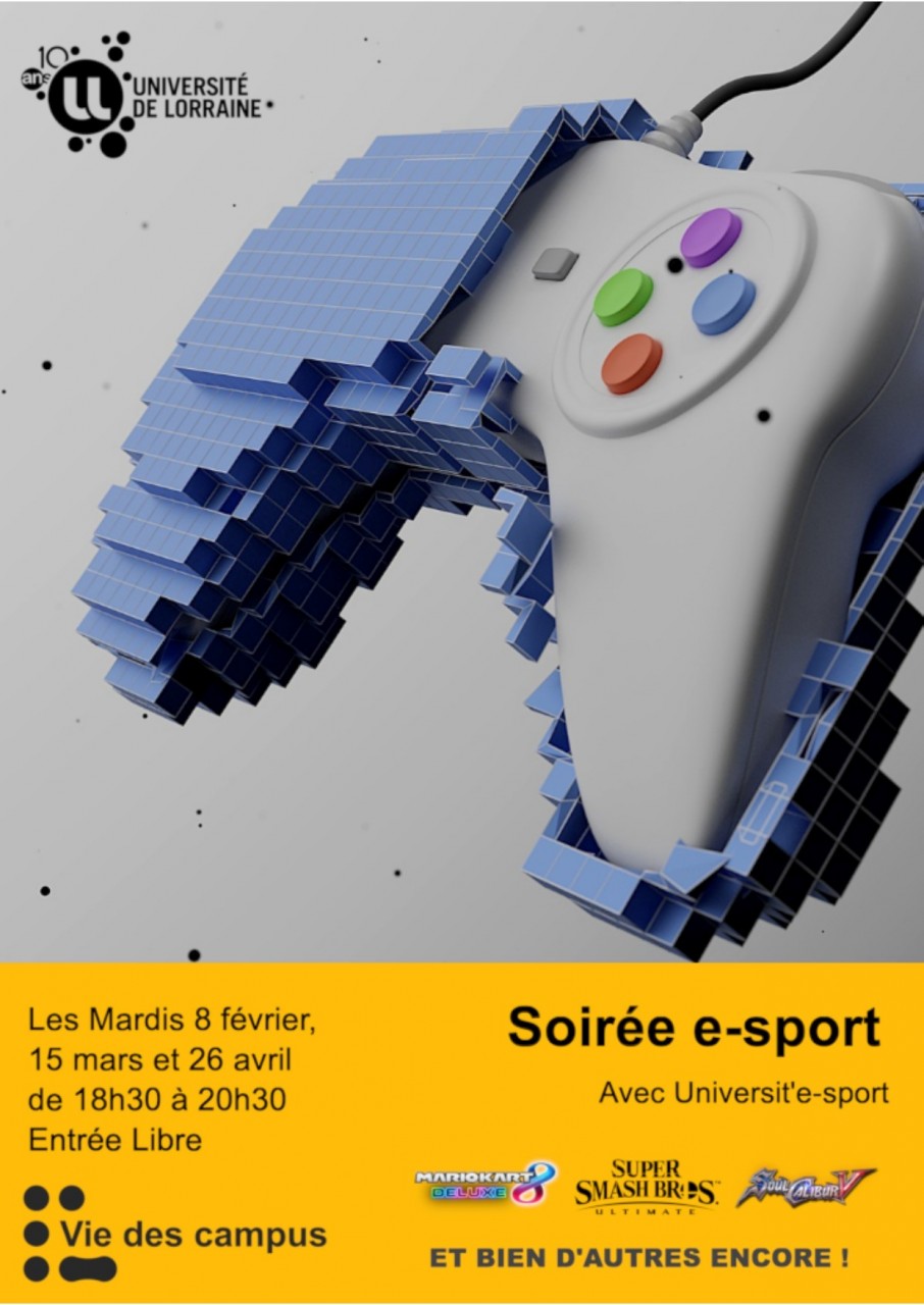Organisé par Universit'E-Sport. Dernière soirée de l'année dans ta MDE, mardi 26 avril de 18h30 à 20h30.