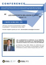 - Vendredi 27 mai 2022 à 10h – « LA SÉPARATION DE L’ETAT ET DE L’EGLISE : DE LA PREMIÈRE SÉPARATION À LA LOI DE 1905 » (volet 3/3)