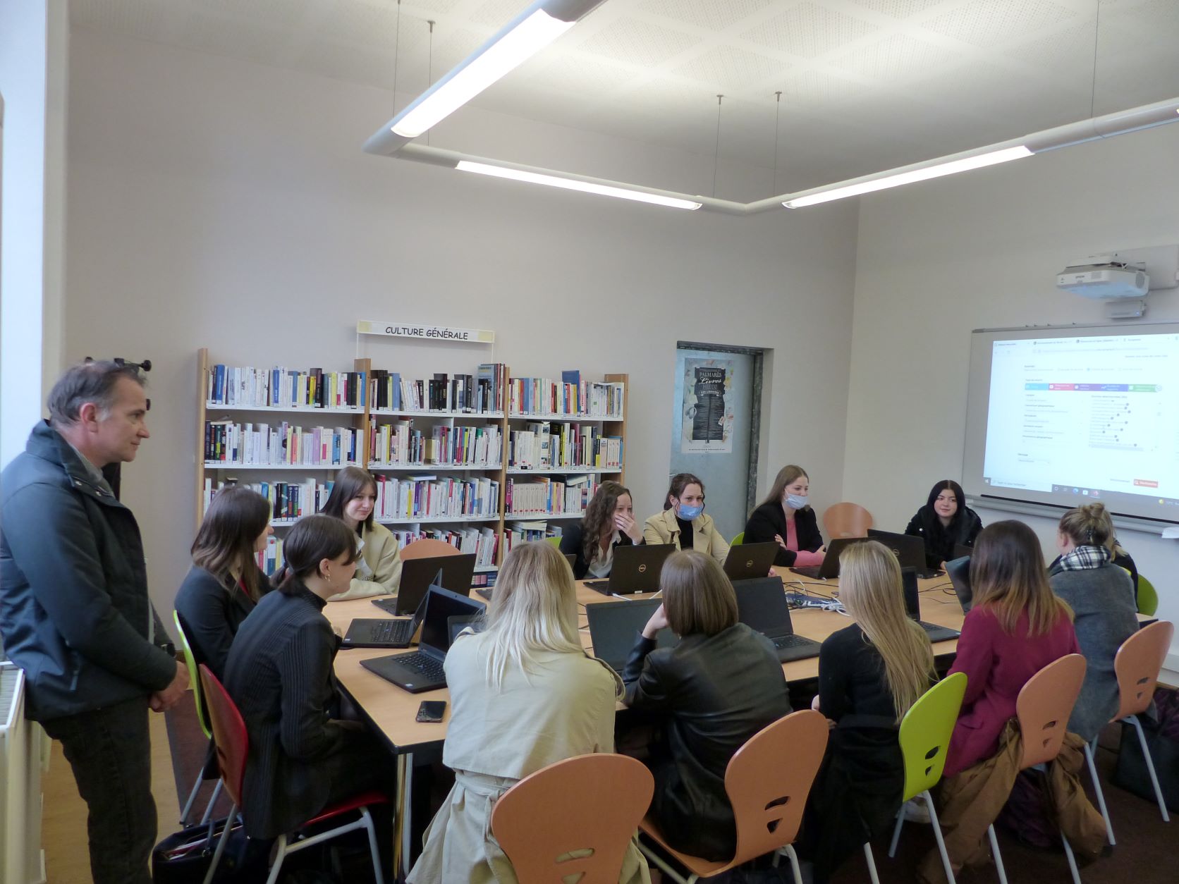 Après une présentation de la bibliothèque universitaire et des services offerts, Christelle Bonniec a présenté la base de données Europresse afin que les élèves puissent effectuer des recherches documentaires dans le cadre de leur préparation au grand oral. Parmi les sujets : « Le bien-être au travail influence-t-il les performances de l'entreprise ? » ou bien « Les transformations numériques contribuent-elles à améliorer la relation client ? ». A l’issue de cette séance, les élèves devaient avoir trouvé au moins deux sources pertinentes en lien avec leur sujet.
