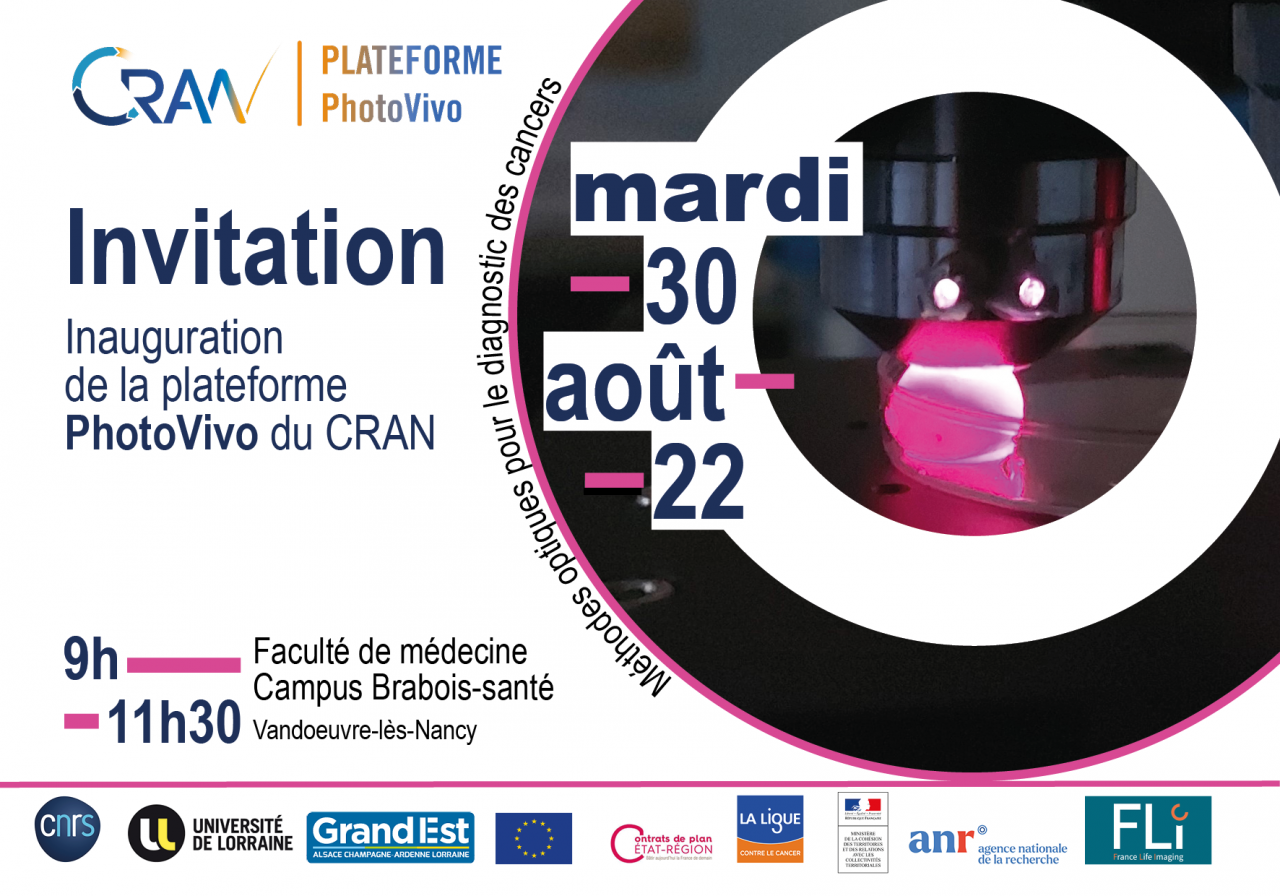 Développée sous l’impulsion du Contrat de Plan Etat-Région 2015-2020 avec le cofinancement de la Ligue contre le Cancer, la plateforme PhotoVivo sera inaugurée mardi 30 août à 9h au Campus Brabois-Santé pour présenter son actualité et l'ensemble de ses équipements.
