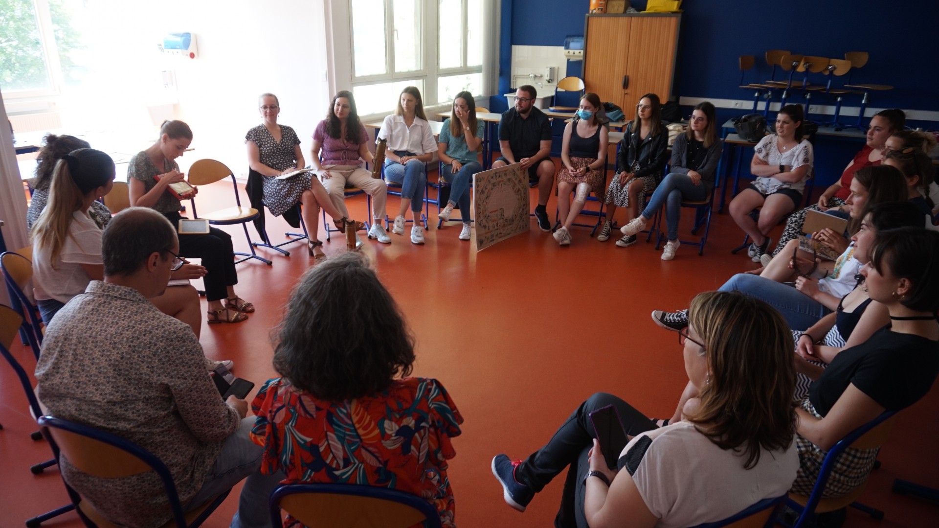 En début d’après-midi, tous les participants à cette journée de travail ont été chaleureusement accueillis par Gilles Leuvrey, directeur du site INSPE d’Epinal. Plusieurs prises de paroles sur la définition de la pédagogie Freinet et leurs mises en œuvre quotidiennes dans les classes vosgiennes et lorraines, se sont succédées, pendant une vingtaine de minutes. C’étaient les témoignages d’enseignantes et enseignants en exercice, de la maternelle à l’université.