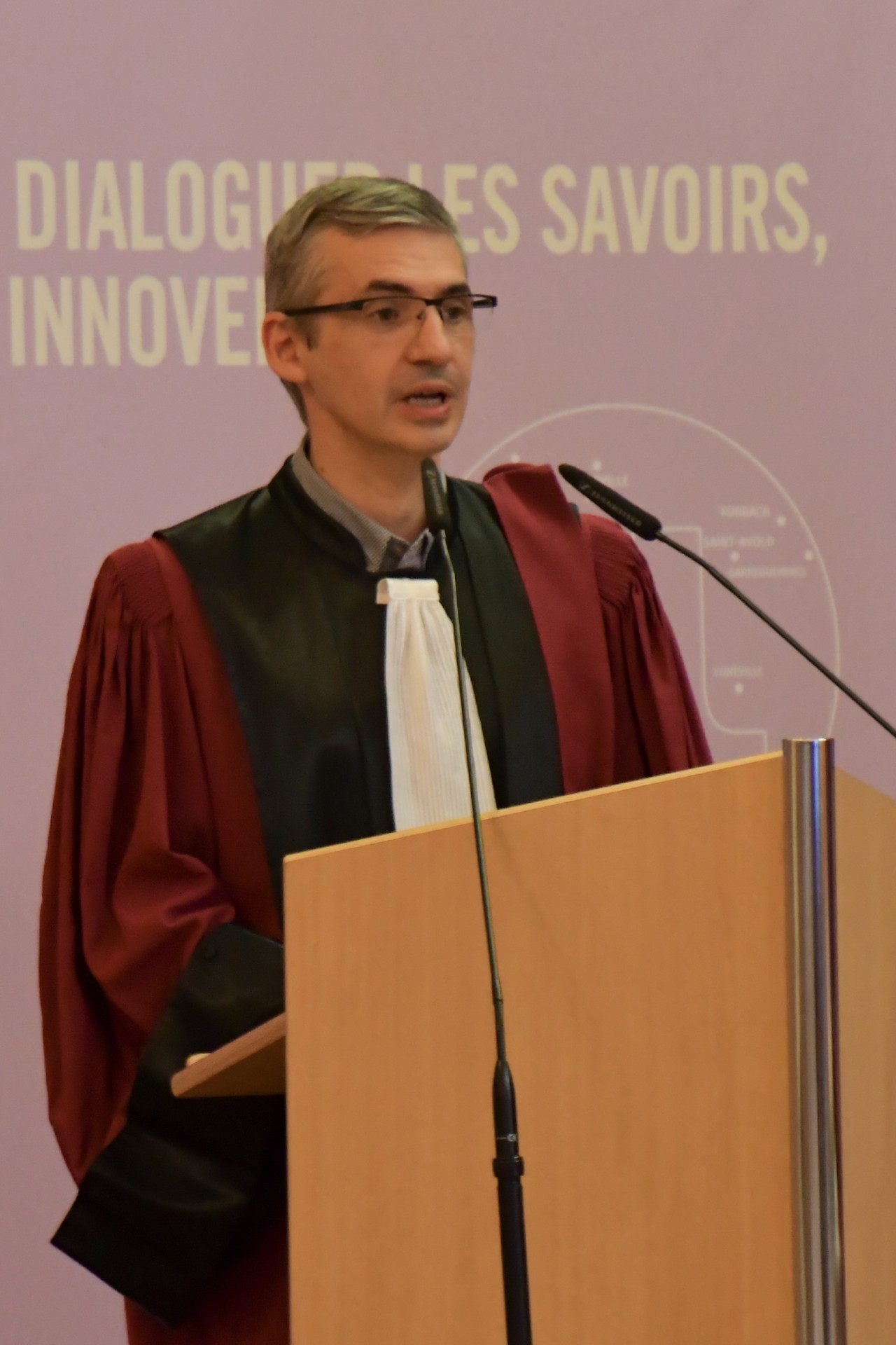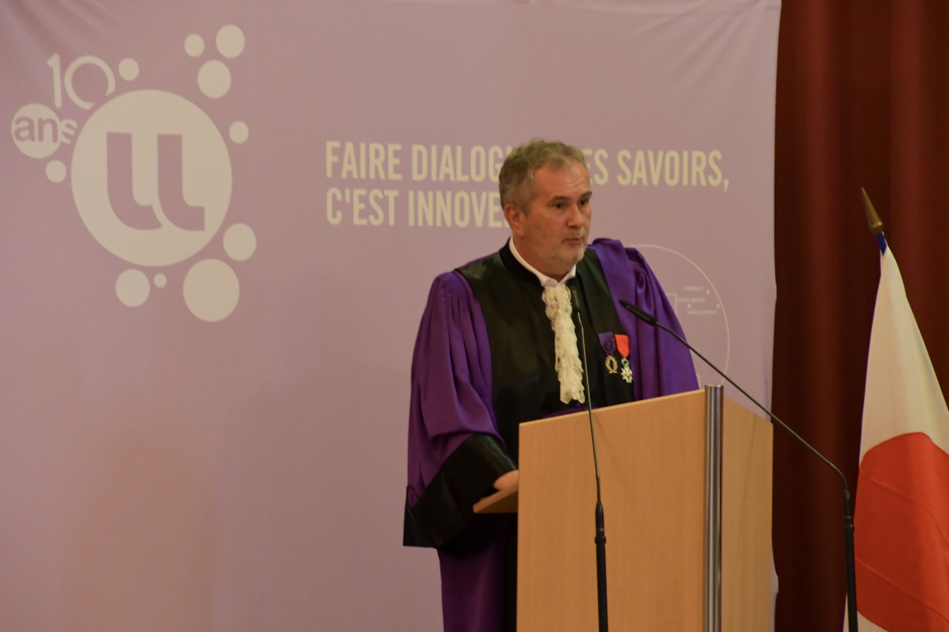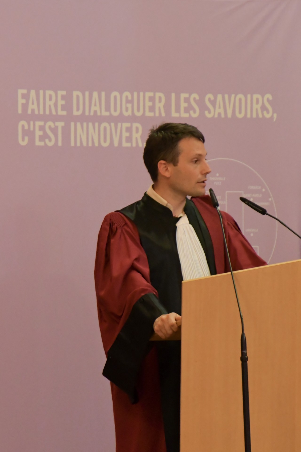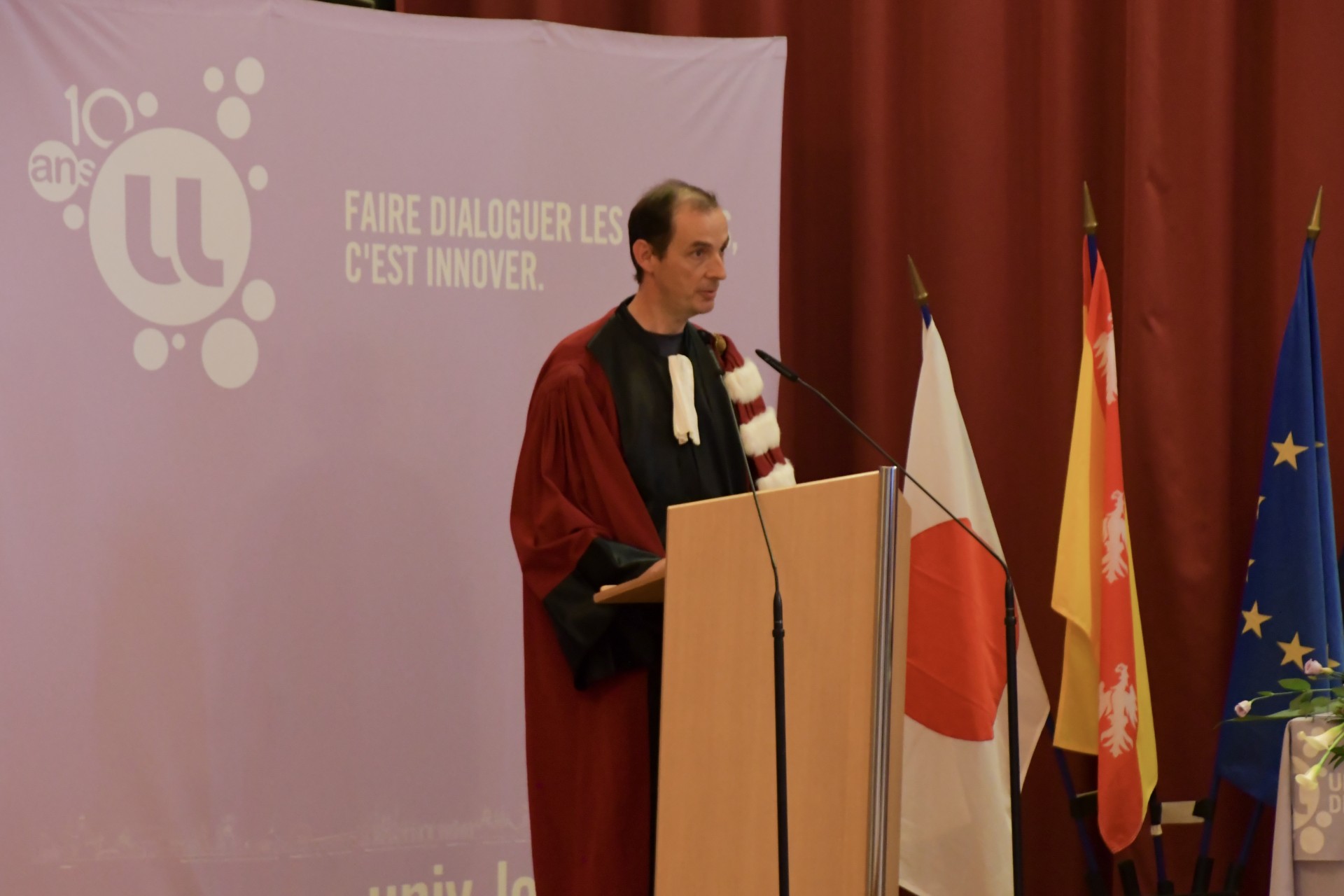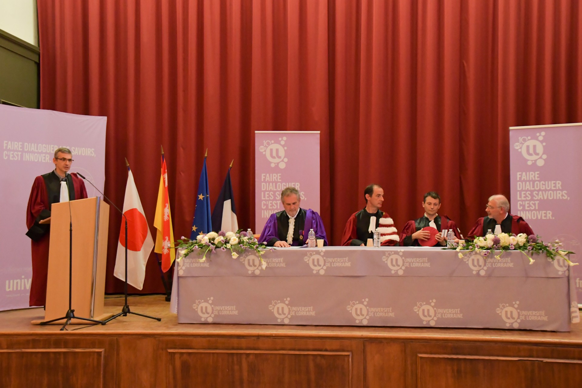 En présence de Pierre Mutzenhardt, président de l'Université de Lorraine, Frédéric Hamelin, administrateur provisoire de la Faculté des Sciences et Technologies, François Rousseau, directeur de l'Ecole des Mines de Nancy et Stéphane Mangin, enseignant-chercheur à la Faculté des Sciences et Technologies et à l'Institut Jean Lamour et parrain de M. Hideo Ohno, la cérémonie s'est déroulée à la Salle d'Honneur des Universités et a été animée par Thierry Belmonte, directeur de l'Institut Jean Lamour.