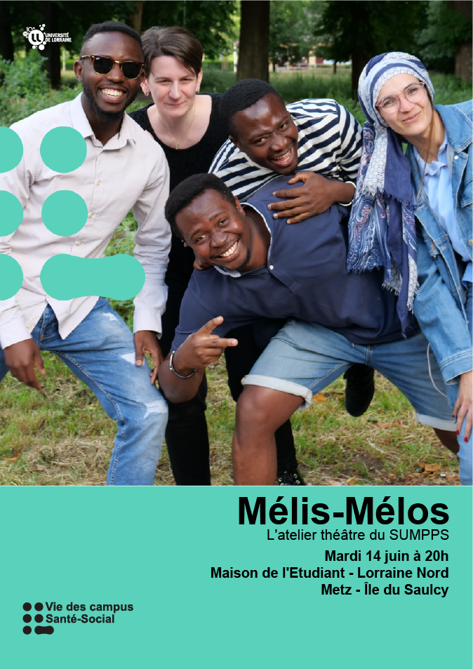Le service social du SUMPPS de Metz, constatant un nombre exponentiel d’étudiants sensibilisés sur le plan émotionnel depuis la crise sanitaire, a mis en place un atelier théâtre sur l’année 2021/22. Ce projet entre dans le cadre des actions de promotion de la santé dédiées au bien-être. En collaboration avec la MDE Lorraine Nord, le projet s'achève par une représentation de fin d’année : les « Mélis-Mélos » vous présentent un combiné de saynètes !