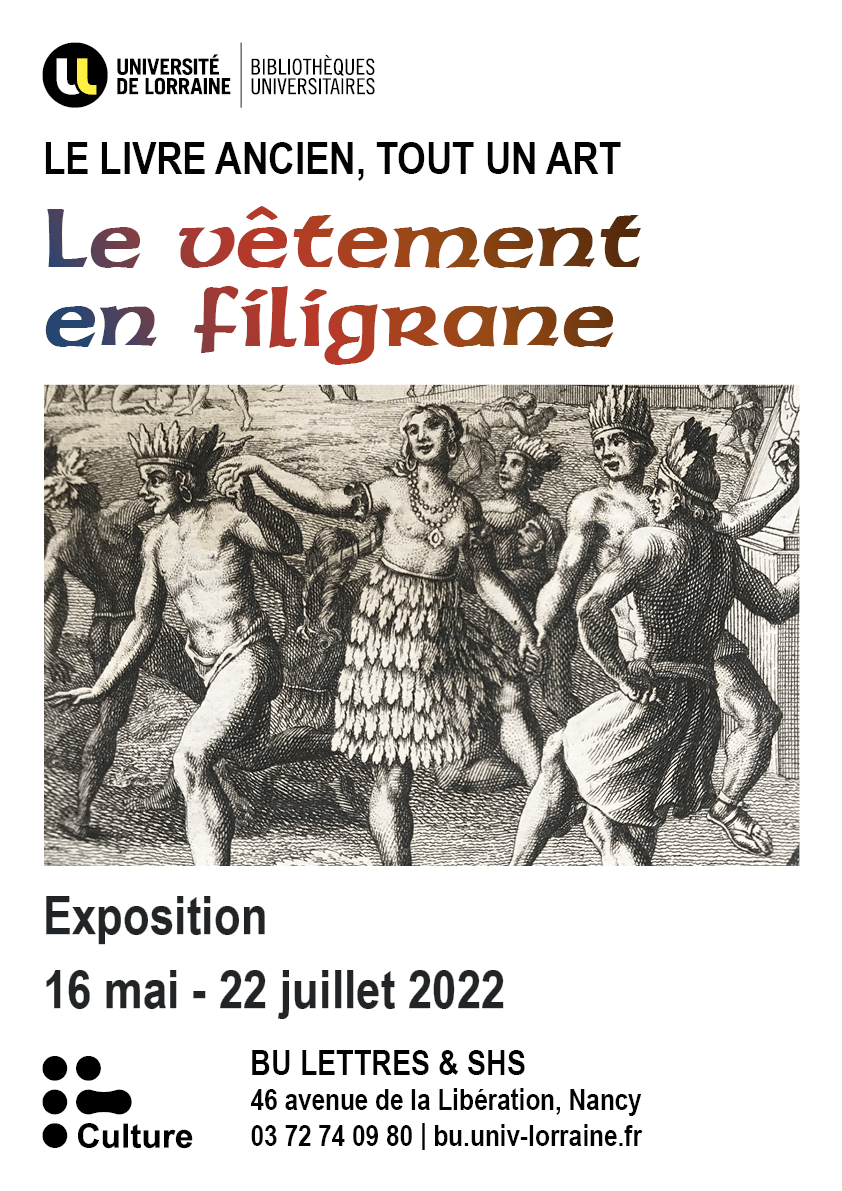 L’exposition Le vêtement en filigrane, organisée dans le hall de la Bibliothèque universitaire de Lettres, Sciences humaines et sociales de Nancy, est tout d’abord une invitation à observer les illustrations du livre ancien comme des œuvres à part entière. Un quizz vient compléter l’expo et permet de gagner des cadeaux.