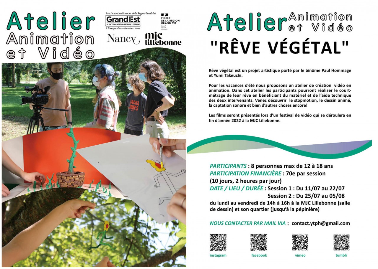 Atelier Animation et Vidéo "Rêve végétal" (Pour Adolescents) :