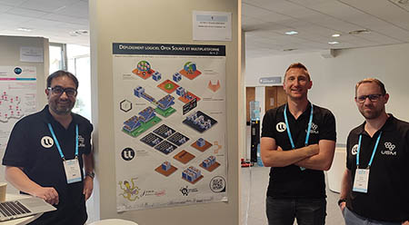 Développée à l'Université de Lorraine par le Service aux Usagers, USM (Universal Software Management) est la solution de gestion de parc qui a été présentée aux JRES 2019. Elle est destinée aux gestionnaires de parcs informatiques et permet d'automatiser le déploiement et les mises à jour d’applications sur les postes de travail Linux, Windows et MacOS. Il s’agit de l’outil préconisé par la Direction du Numérique pour garantir la conformité et la cohérence des applications déployées dans le périmètre de l’université. L'intérêt suscité par cette présentation lors de l’édition 2019 auprès de la communauté de l'Enseignement Supérieur et de la Recherche (ESR) a conduit Guillaume Ferry à venir présenter 3 ans plus tard, sous la forme d'un poster, les évolutions apportées pour pérenniser le service à l'échelle de l'établissement. Ce format de présentation, propice aux échanges, a permis de rencontrer et de nouer des liens avec d'autres établissements, durant les 2 sessions d'1h15 dédiées aux posters.