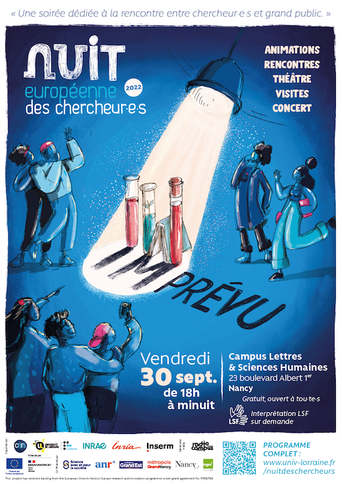 Après une dernière édition lorraine en 2015, le CNRS, l’INRAE, l’INRIA, l’INSERM et l’Université de Lorraine relancent la Nuit Européenne des Chercheur.e.s qui se déroulera le 30 septembre 2022 de 18h à minuit sur le Campus Lettres et Sciences Humaines de Nancy. L’occasion de vous laisser surprendre par la science et d’échanger avec les chercheurs.es. avec comme fil conducteur : la thématique de l’imprévu.
