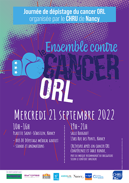 Une journée dédiée à la prévention des cancers ORL est organisée le mercredi 21 septembre 2022 par le service ORL, accompagné par la Fédération de cancérologie du CHRU de Nancy.