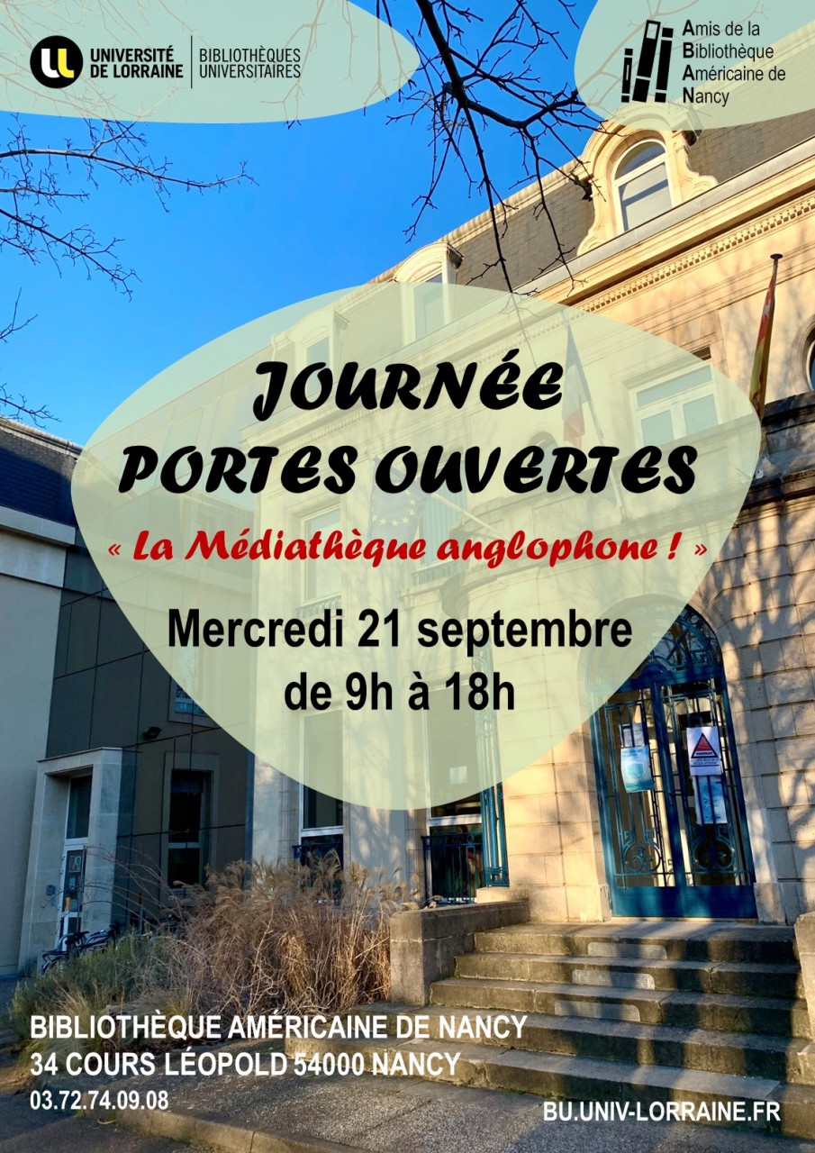 Le mercredi 21 septembre 2022 de 9h à 18h, la Bibliothèque américaine de Nancy (BAN) ouvre ses portes. Venez à la rencontre des bibliothécaires, de l’association des Amis de la Bibliothèque américaine de Nancy et de ses adhérents !