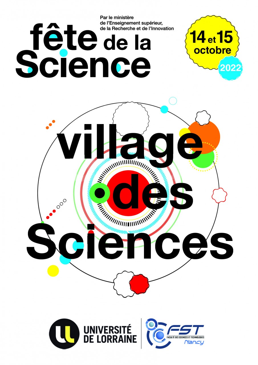 Cette année encore, la Faculté des Sciences et Technologies de Nancy organise un Village des Sciences dans le cadre de la Fête de la Science. Rendez-vous incontournable de l'automne, cette manifestation vise à promouvoir la science auprès du grand public. Elle offre une occasion gratuite de discuter de sujets scientifiques dans une relation directe avec ses acteurs. Tous les publics, de tous âges, sont concernés : familles, scolaires, étudiants, curieux, sceptiques ou passionnés de sciences.