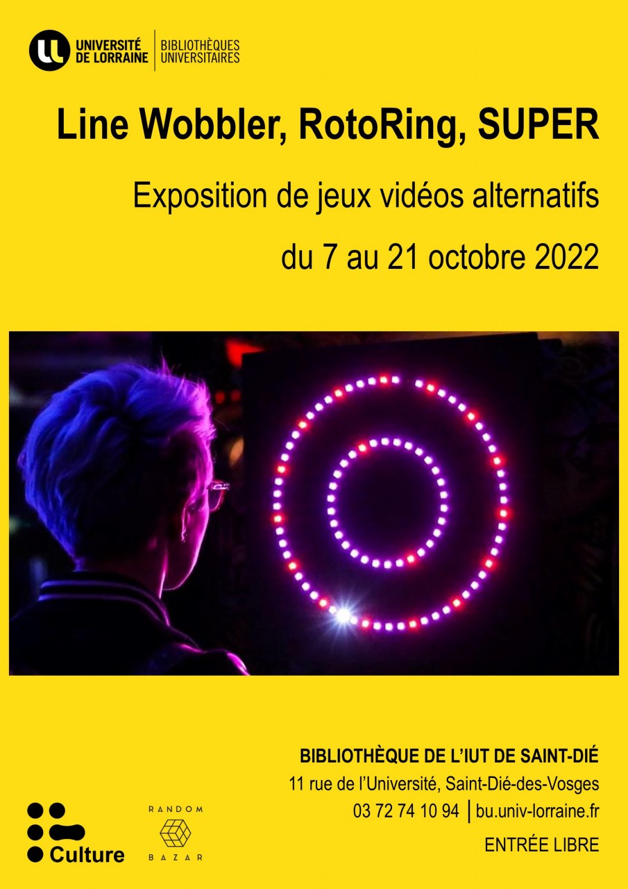 Random Bazar, diffuseur de jeux alternatifs, pose ses valises à la BU de l’IUT de Saint-Dié et nous fait découvrir des jeux vidéo comme on n’en voit pas souvent : manettes géantes, écrans circulaires, jeu de plateforme en une dimension, etc.