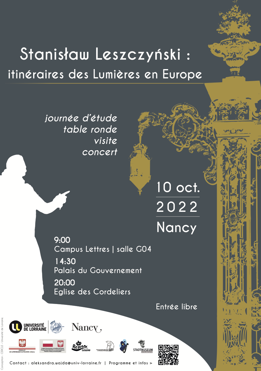 Organisée par le laboratoire CERCLE de l’Université de Lorraine dans le cadre d’un projet de coopération entre les villes de Nancy, de Leszno et de Zweibrücken dédié à Stanisław Leszczyński, la Journée d’étude Stanisław Leszczyński : itinéraires des Lumières en Europe se donne pour objectif de mettre en lumière les itinéraires européens du roi Stanislas. La problématique abordée se déclinera en deux volets. Nous nous intéresserons d’une part aux voyages de Leszczyński, en cherchant à les situer dans le contexte d’une tradition remontant à la première modernité. D’autre part, nous essayerons de retracer les circulations de la figure de Leszczyński dans l’espace culturel européen, et tout particulièrement : dans celui des trois pays partenaires du projet (Pologne, France, Allemagne), des Lumières jusqu’à aujourd’hui, en insistant sur les enjeux idéologiques, économiques et culturels de ces circulations ainsi que sur les transferts culturels qui en résultent.