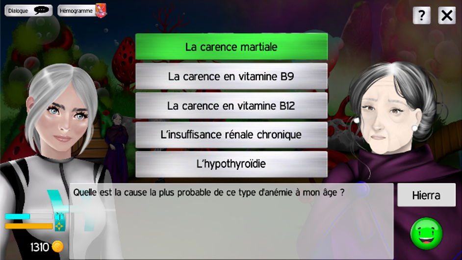 Chaque cas résolu permet de gagner un certain nombre d’étoiles selon le nombre d’erreurs commises, une cellule hématopoïétique apparait cachée dans le décor et un mini-jeu permettant de gagner des pièces d’or se débloque. L’or accumulé permet de réaliser des examens complémentaires délivrés par des magiciens (radiologue, hématobiologiste, pharmacien, etc.). Un atlas des cellules découvertes permet d’obtenir leur description et leur rôle physiologique et/ou pathologique.