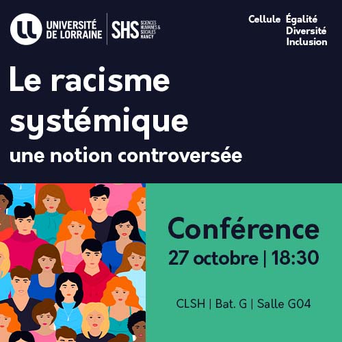 La Cellule Egalité Diversité Inclusion de l’UFR SHS - Nancy vous invite à la première séance de son cycle de conférences autour des thèmes liés aux discriminations. Sexisme, violences sexistes et sexuelles, LGBT phobies, racisme, antisémitisme… retrouvons-nous autour de ces notions pour créer un espace d’échange et de partage des recherches !