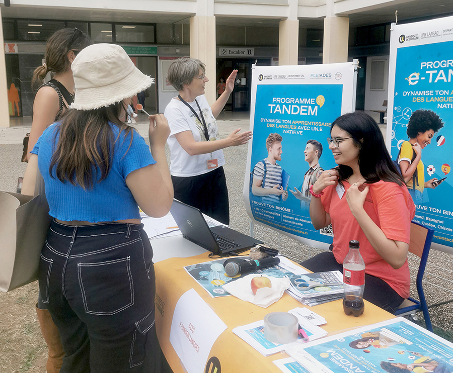 Le programme (e)Tandem, soutenu par le projet PLEIADES, a été présenté aux étudiants de première année à l’occasion du Village des Associations. Sur place, une centaine d’étudiant·es ont manifesté leur intérêt pour le programme E-Tandem.