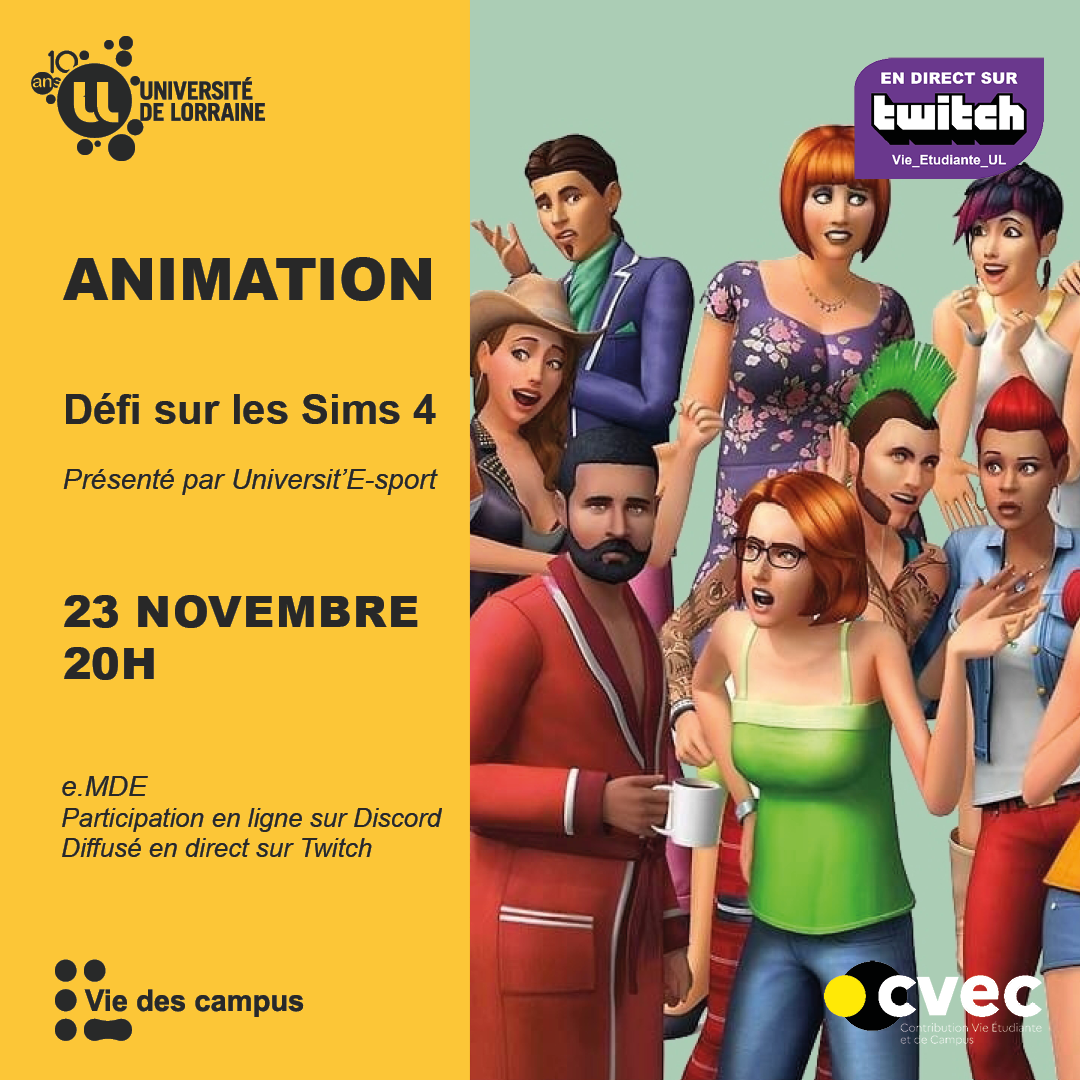 L'association Universit'E.sport propose du lourd pour sa première animation de l'année avec la e.MDE : une soirée de défis à relever sur les SIMS 4 !