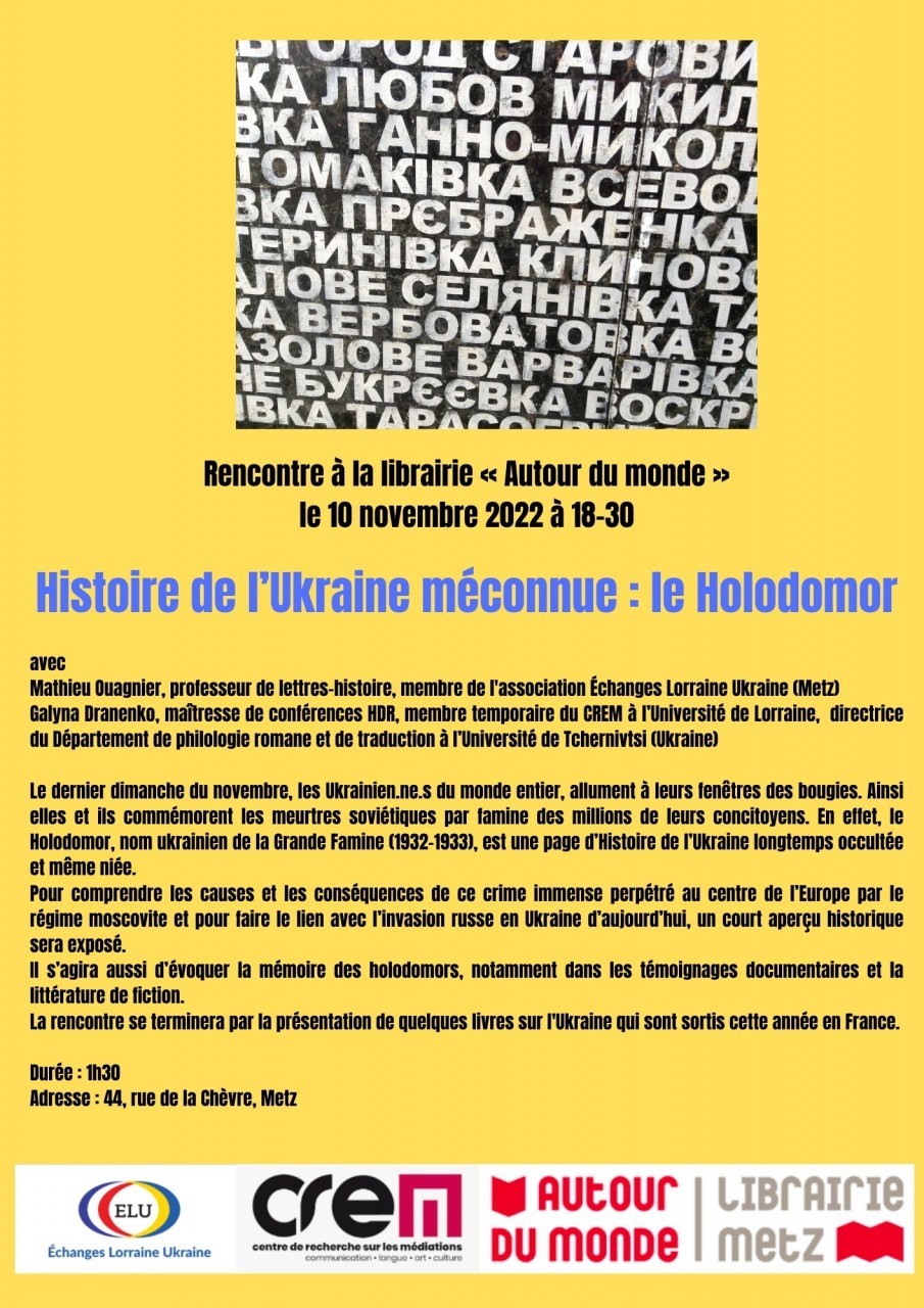 Il s'agira aussi d'évoquer la mémoires des holodomors, notamment dans les témoignages documentaires et la littérature de fiction.