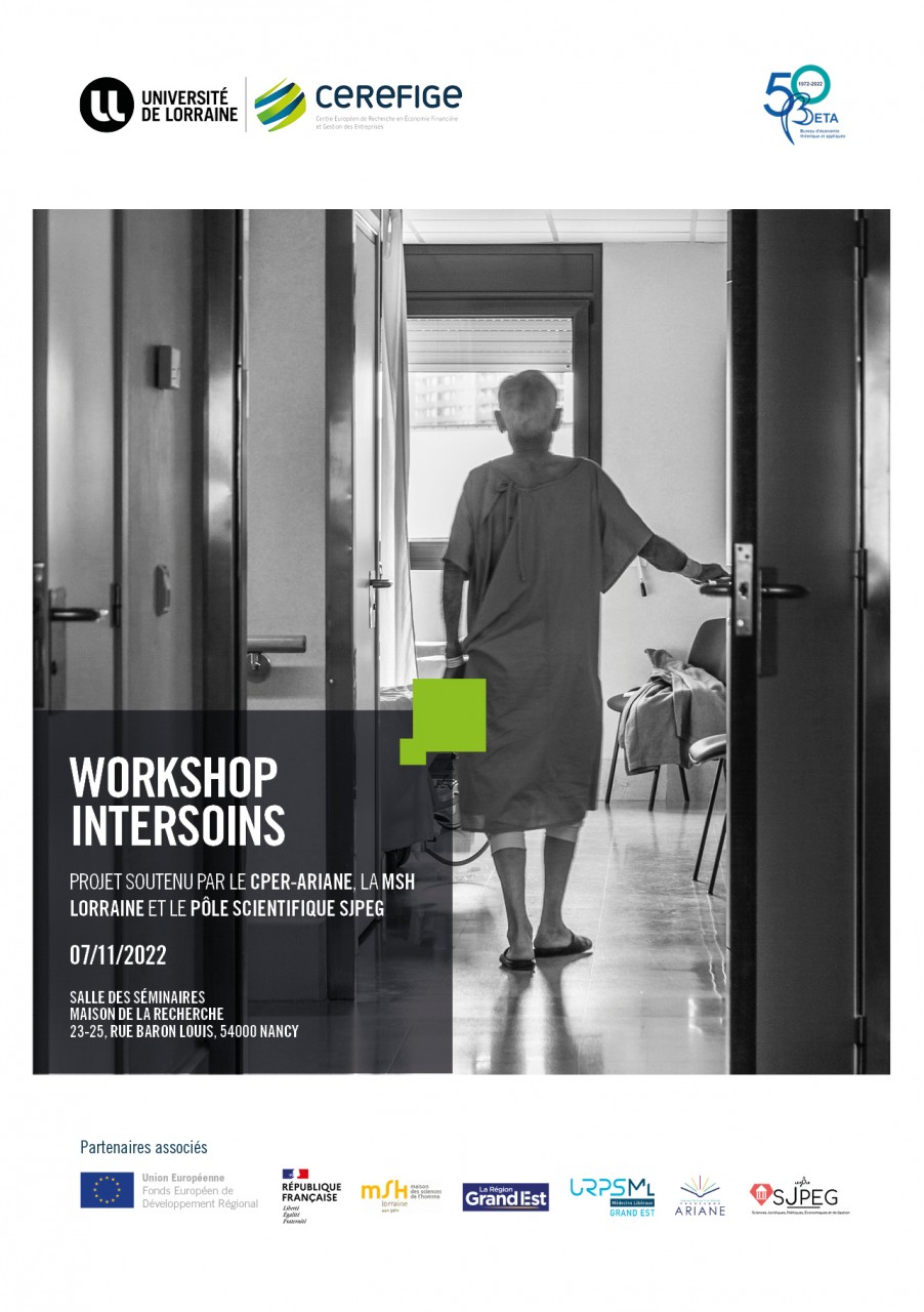 Le projet de recherche INTERSOINS porté par Delphine Wannenmacher (CEREFIGE, Université de Lorraine) et financé par le CPER Ariane avec le soutien du FEDER, la Maison des Sciences de l'Homme de Lorraine et le Pôle Scientifique SJPEG de l’Université de Lorraine, a réuni des chercheurs du CEREFIGE et du BETA. L’objectif du projet était de mettre en exergue les principales difficultés rencontrées dans la coordination des parcours de soins des patients, mais aussi de mettre en lumière les différents leviers et les initiatives prises par les professionnels de santé pour dépasser ces difficultés. Les échanges lors du workshop ont montré la convergence des intérêts et motivations des acteurs scientifiques et professionnels mais aussi des patients et de leurs familles, convaincus qu’un travail conjoint pourra engendrer de réels changements au niveau sociétal en matière de santé. Plusieurs constats relatifs à la coordination pluriprofessionnelle des parcours ont été dressés.
