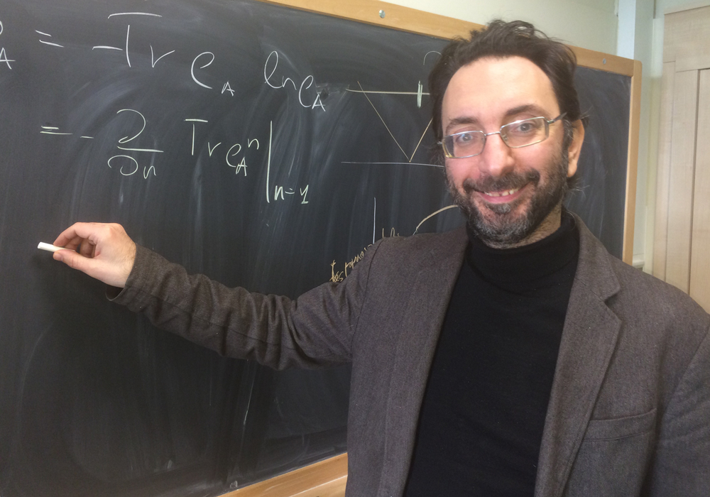 Pasquale Calabrese est un physicien théoricien italien, professeur permanent à SISSA (Scuola Internazionale Superiore di Studi Avanzati) à Trieste. C’est un leader reconnu internationalement pour ses contributions au domaine de la physique statistique quantique, qui concerne les propriétés quantiques des gaz, liquides, ou solides, formés d’un très grand nombre d’atomes ou d’autres constituants quantiques. Pasquale Calabrese a notamment été l’un des pionniers dans l’étude de l’intrication quantique dans ces systèmes. L’intrication quantique est au cœur des propriétés exotiques des systèmes quantiques. Son caractère non-intuitif a généré de très nombreux débats depuis la naissance de la mécanique quantique au début du XXe siècle, l’un des plus fameux étant la controverse entre Einstein et Bohr sur l’interprétation de cette théorie, et sa résolution par les expériences d’Alain Aspect (prix Nobel de physique 2022). C’est également l’intrication qui est au cœur des applications technologiques potentielles, telles que l’ordinateur quantique, la cryptographie quantique, ou encore les capteurs quantique.