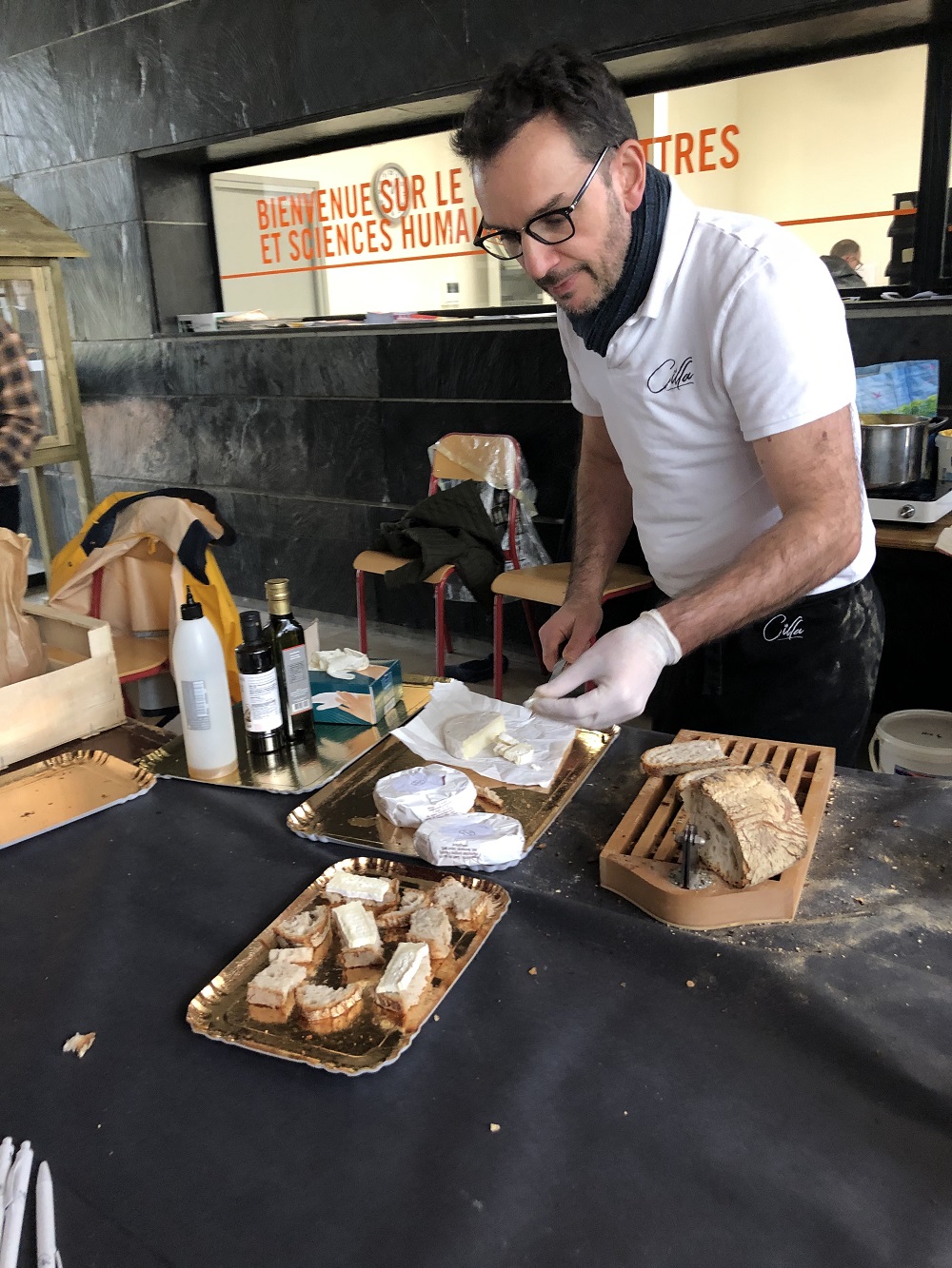 Le temps d'un midi, 6 producteurs locaux ont été sollicités pour faire découvrir leurs produits aux étudiants et personnels : soupe à la truffe préparée et offerte par Truffe 54 (170 dégustations, 20 litres), toasts au fromage à l'huile de truffe de la boulangerie Cilla, miel et pain d'épices du Rucher de la Reine Louise, petits pâtés et plats du jour des P'tits pâtés de Steph qui ont été dévalisés, jus de fruits locaux et moutarde des Terrasses d'Amance, et enfin surprenante dégustation des navets bio de Croc'us qui nous a annoncé mettre en place un tarif étudiant pour ses produits.