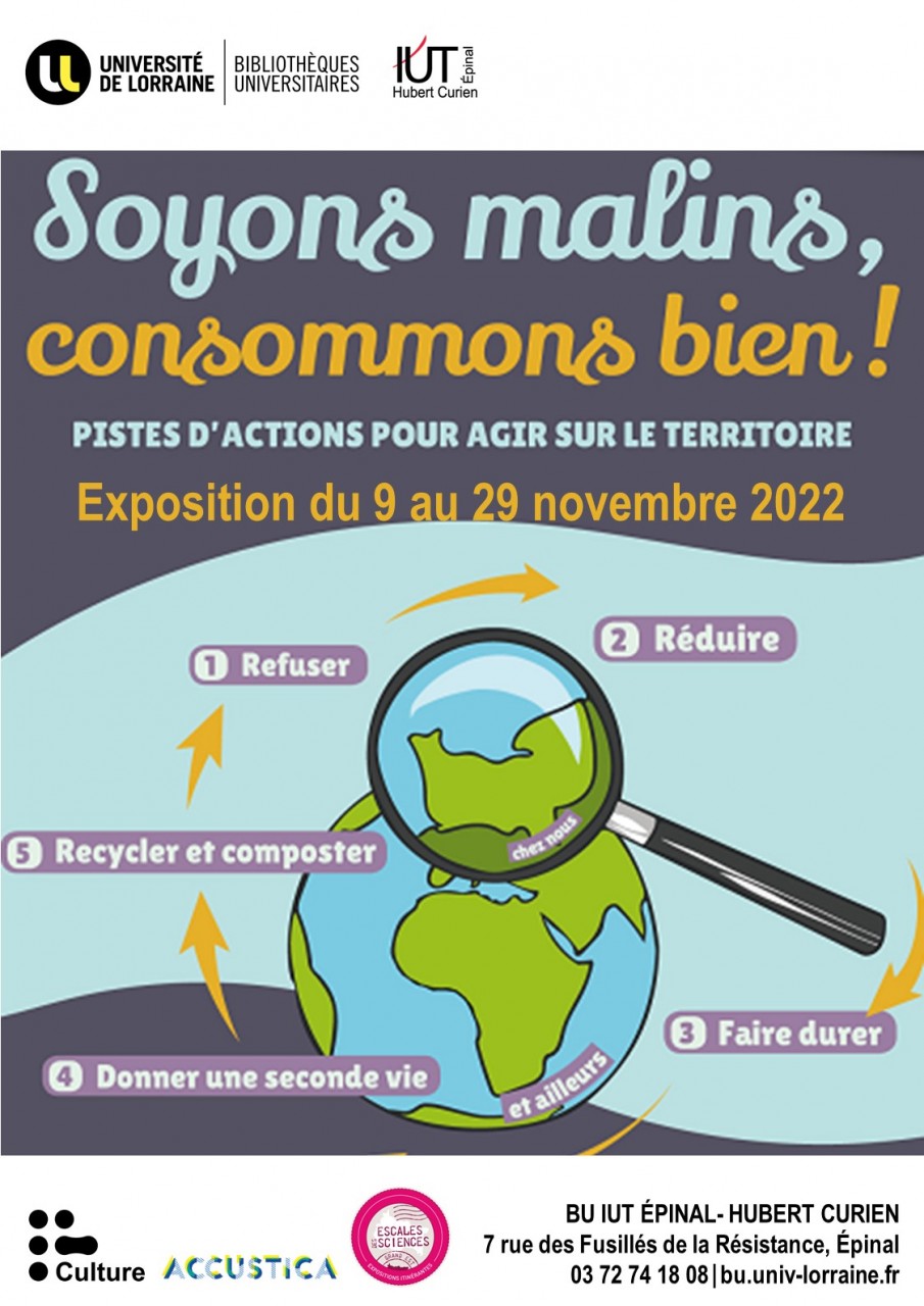 Dans le cadre de la Semaine Européenne de la Réduction des Déchets 2022 (SERD), la BU de l’IUT Épinal-Hubert Curien vous invite à découvrir une exposition Escale des Sciences "qui donne plein d'idées pour consommer mieux, conserver la durée de ses produits et moins jeter".