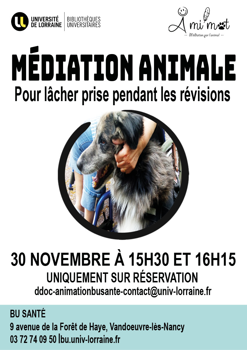 Le contact avec les animaux a un impact positif sur notre bien-être. C’est dans cette optique que la BU Santé organise pour la première fois un atelier de médiation animale avec l’association À Mi’ Mot le mercredi 30 novembre 2022.