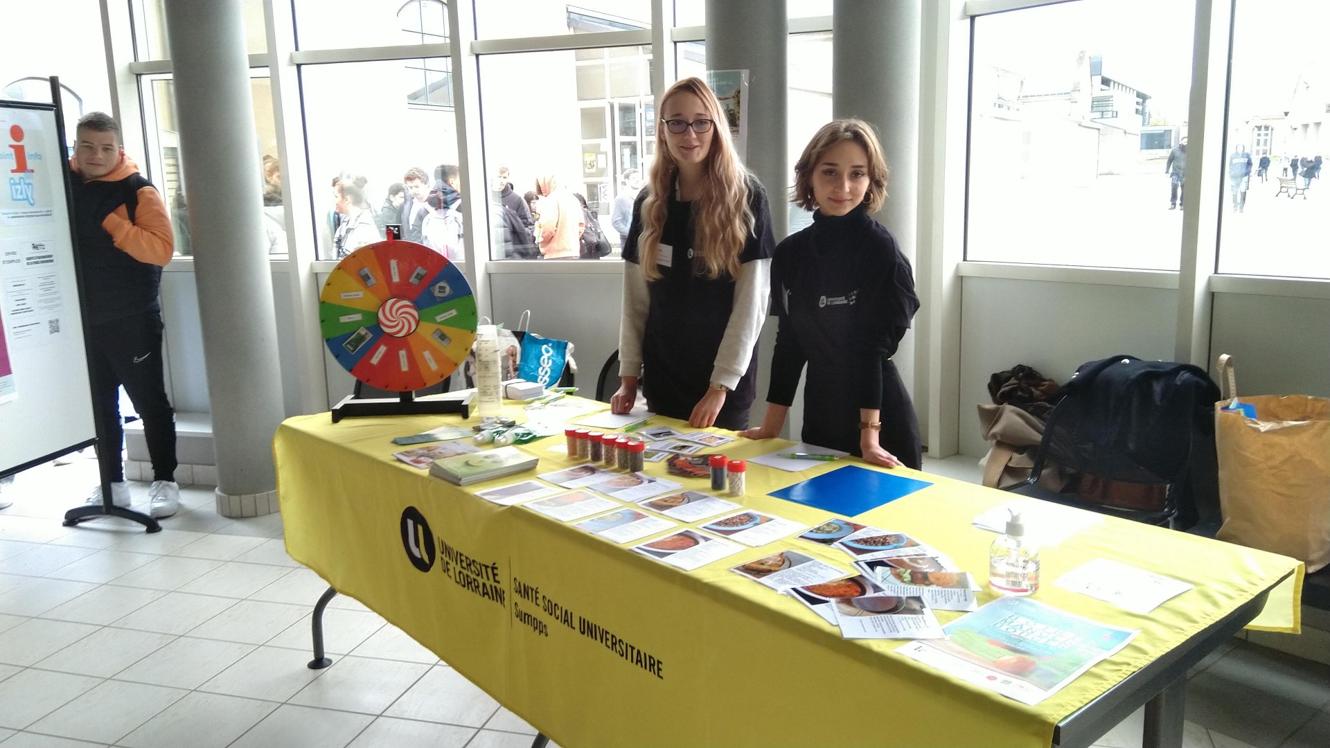 Derrière le stand, étaient présents l’équipe des étudiants-relais du SUMPPS, la représentante MGEN mais aussi la diététicienne et nutritionniste du service universitaire de médecine qui répondait aux interrogations des étudiants.