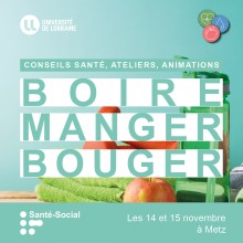 Lundi 14 et mardi 15 novembre, a eu lieu l’action « Boire, Manger, Bouger » réalisée par le SUMPPS Lorraine Nord, en partenariat avec la MGEN et le CROUS.