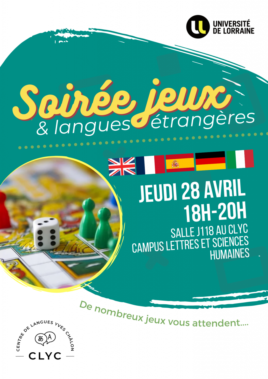 Le Centre de langues Yves Châlon vous invite à une soirée jeux et langues étrangères de18h à 20h le lundi 12 décembre (bâtiment J, 1er étage, salle J118).
