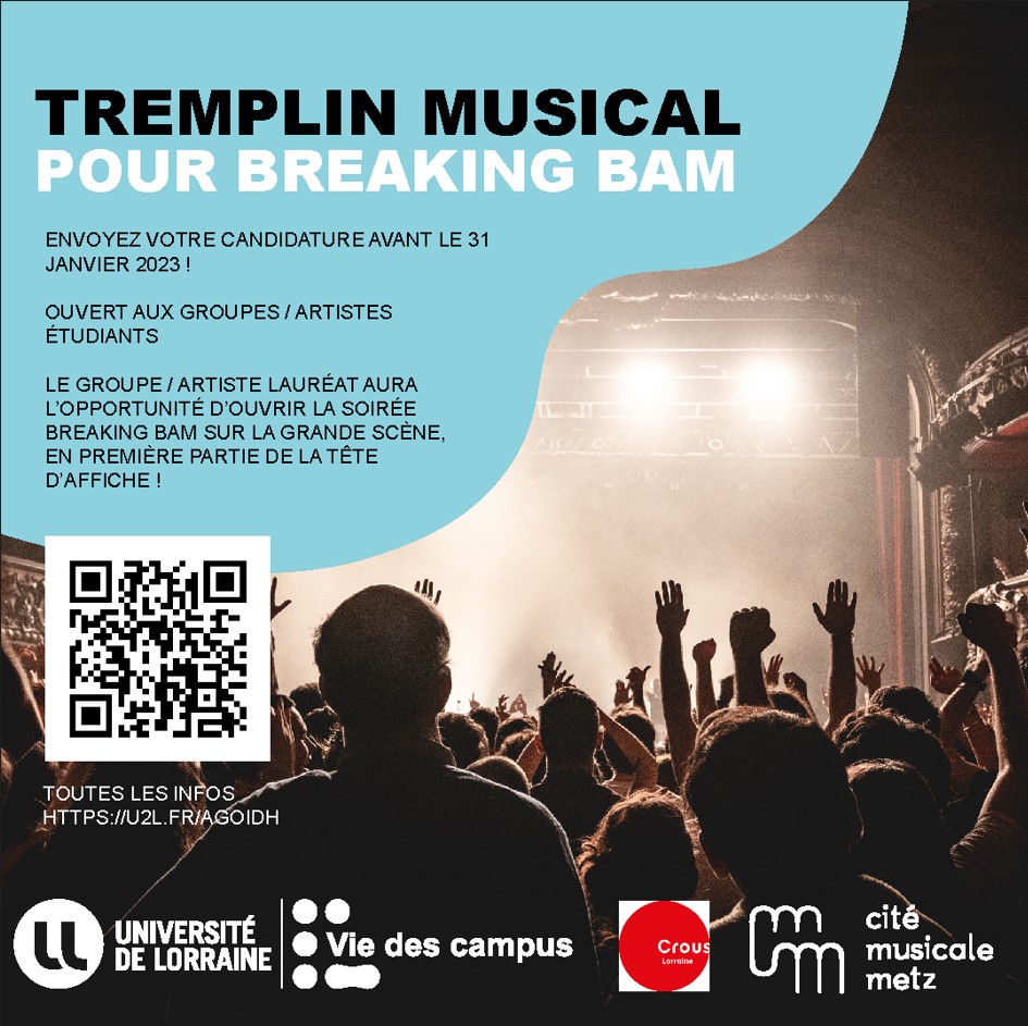 Avant le 31/01/2023, envoyez votre candidature par mail à l’adresse tremplin.breakingbam@crous-lorraine.fr :
