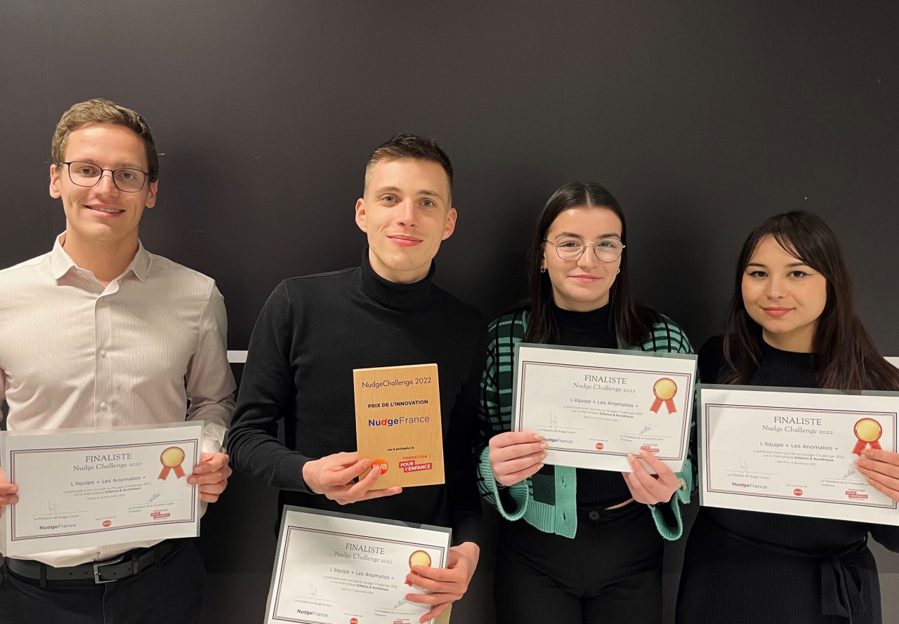 Le 13 décembre 2022 dernier, Loïc, Lilian, Manon et Lisa se sont rendus à Paris pour défendre leur proposition au Nudge Challenge 2022 « Enfants et écrans » organisé par Nudge France. Et attention spoiler… ils ont remporté le prix de l’innovation. Félicitations à eux !