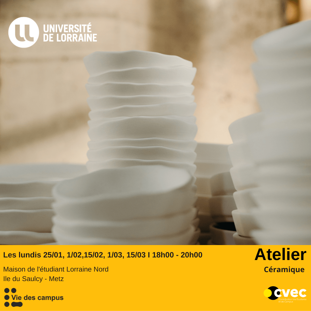 La Maison de l’étudiant vous propose un atelier autour de la céramique avec la galerie l’échelle.