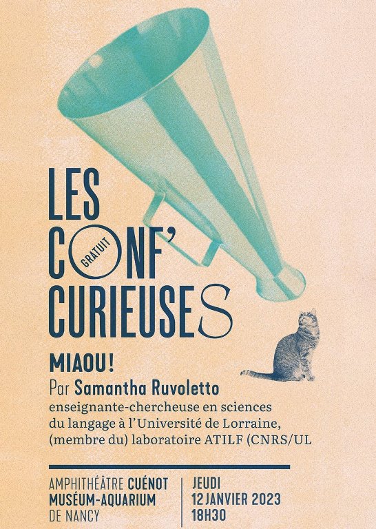 Les Conf'curieuses 2022-2023 vont vous faire ronronner ! Le thème ? Vous ne voyez pas ? Vous donnez votre langue au chat ? C'est le félin préféré des Français. Psychologues, allergologues, linguistes et autres scientifiques déclineront le thème du matou.