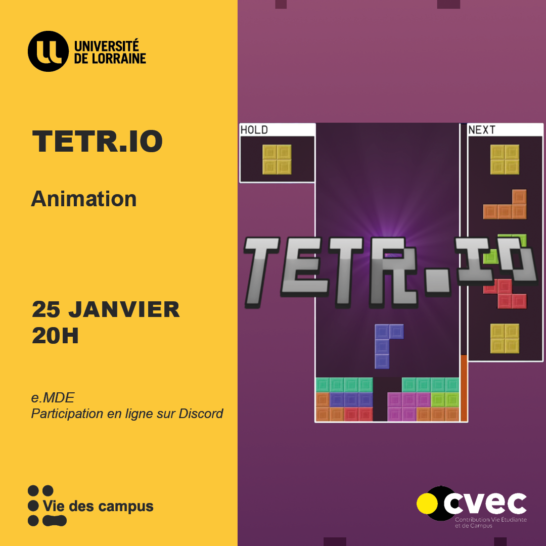 Comment ça se passe ? Les participants seront en vocal sur le Discord de la e.MDE et connectés sur le site Tetr.io. La partie débute en même temps pour tout le monde, les lignes que tu détruis partent chez quelqu'un d'autre et le jeu accélère petit à petit. Le dernier en vie gagne la partie. Simple et efficace !