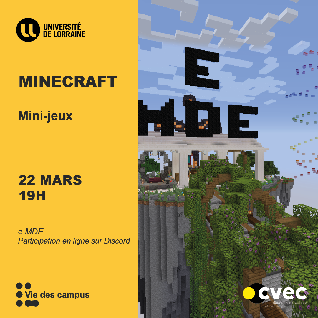 Le serveur Minecraft de la e.MDE organise son premier grand tournoi de mini-jeux ! Au programme : une sélection mêlant adresse, réflexes et une bonne dose de chance !