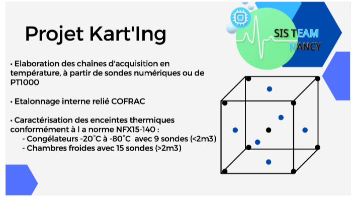 Le projet Kart’Ing est le fruit de plusieurs années d’étude, de développement et de réalisation d’un dispositif innovant permettant de vérifier la conformité en homogénéité des enceintes froides jusqu’à -100°C dans le domaine médical selon la norme FD X 15140. Grâce à ce projet, STN propose aujourd’hui trois niveaux de prestations afin que les acteurs de la santé puissent s’assurer de la conformité de leurs enceintes en caractérisation initiale, quinquennale ou intermédiaire :